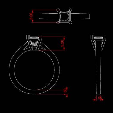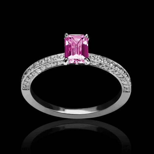 Bague en or 18 K (3 g) avec pierre centrale saphir rose forme princese (1 carat, 1,5 carats et 2 carats)