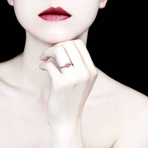 18 K (3,2 g) ruby engagement ring, diamonds paving (0,1 carat), ruby paving (0,11 carat), emerald paving (0,07 carat), black diamond paving (0,11 carat), blue sapphire paving (0,11 carat), pink sapphire paving (0,11 carat)