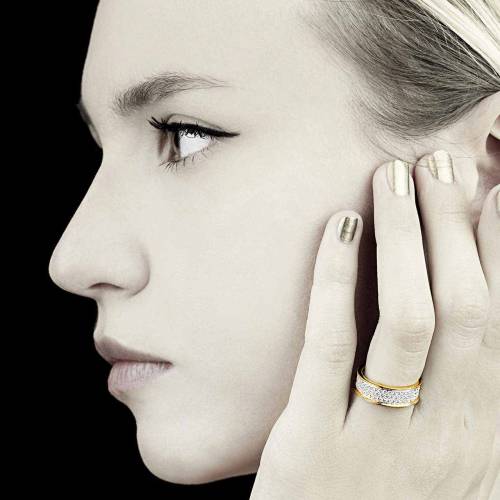 L’alliance Eve en or jaune de la maison Jaubalet met en avant l’éclat des pierres précieuses qui représentent le symbole de l’amour éternel.